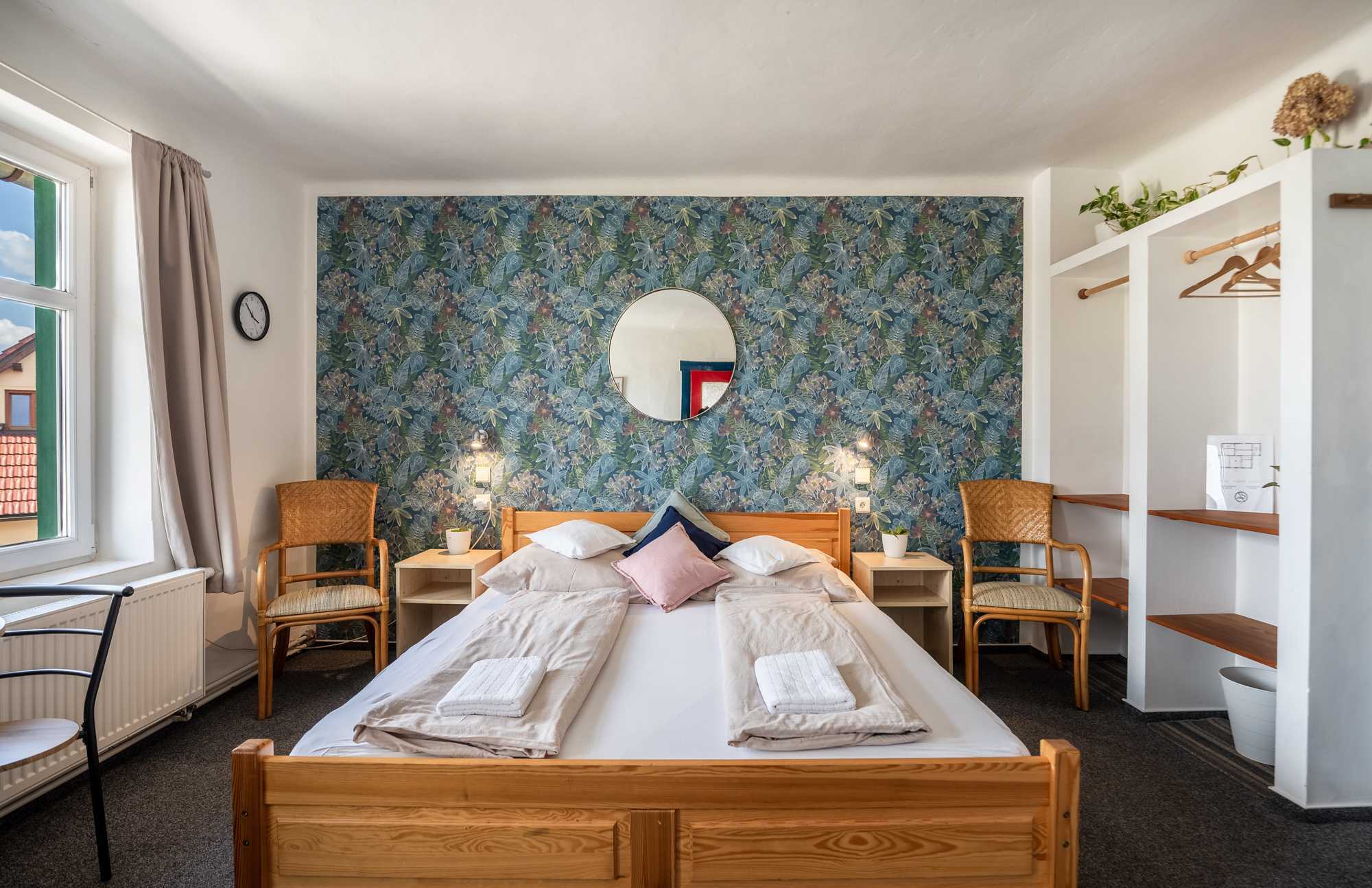 TV• Výhled do zahrady a výhled na město• Centrální topení s regulací na pokoji• Šatní otevřený úložný prostor• lůžkoviny z dutého vlákna včetně povlečení• Posezení• lednice• rychlovarná konev